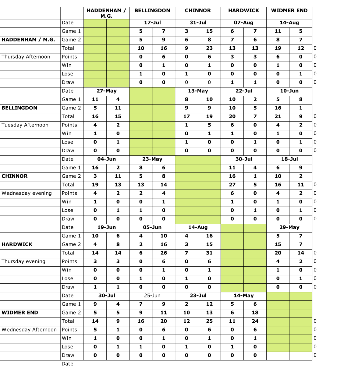 uckinghamshire Short Mat Bowls